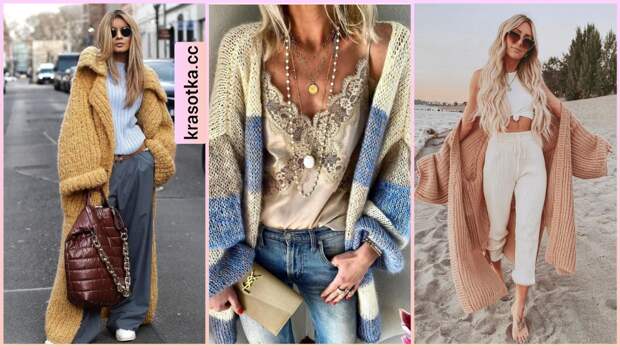 Их можно носить на распашку или эффектно подчеркнуть талию красивым ремнем.Удлиненный кардиган